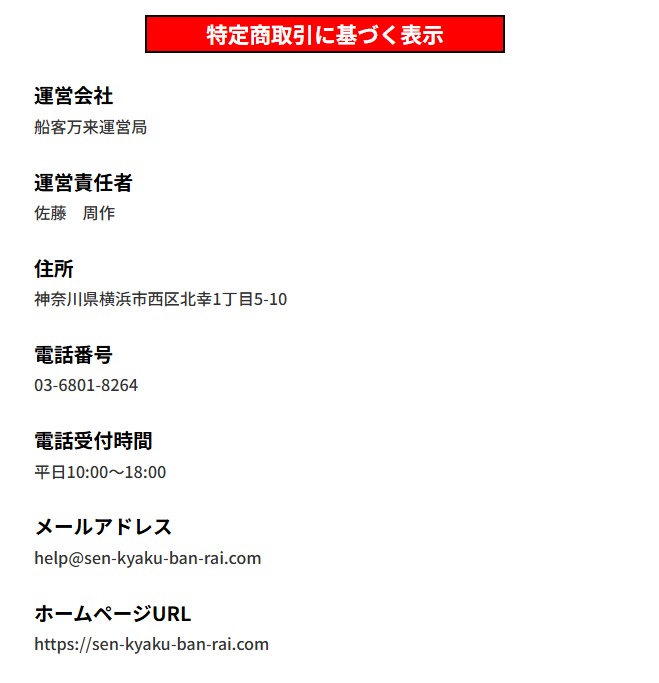 - 【メールアドレス】help@sen-kyaku-ban-rai.com