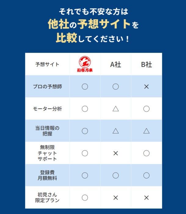 船客万来の有料予想プラン一覧!初回限定プランあり