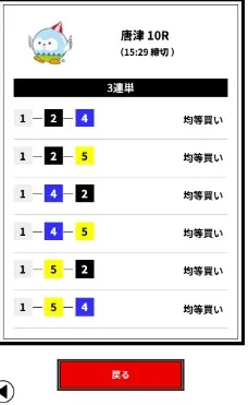 こちらもしっかりと的中させ、オッズも41.5倍ということなので払戻は26万1450円となりました。